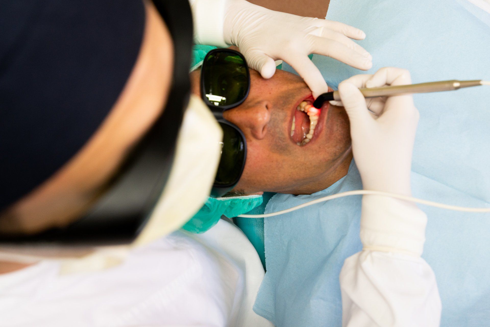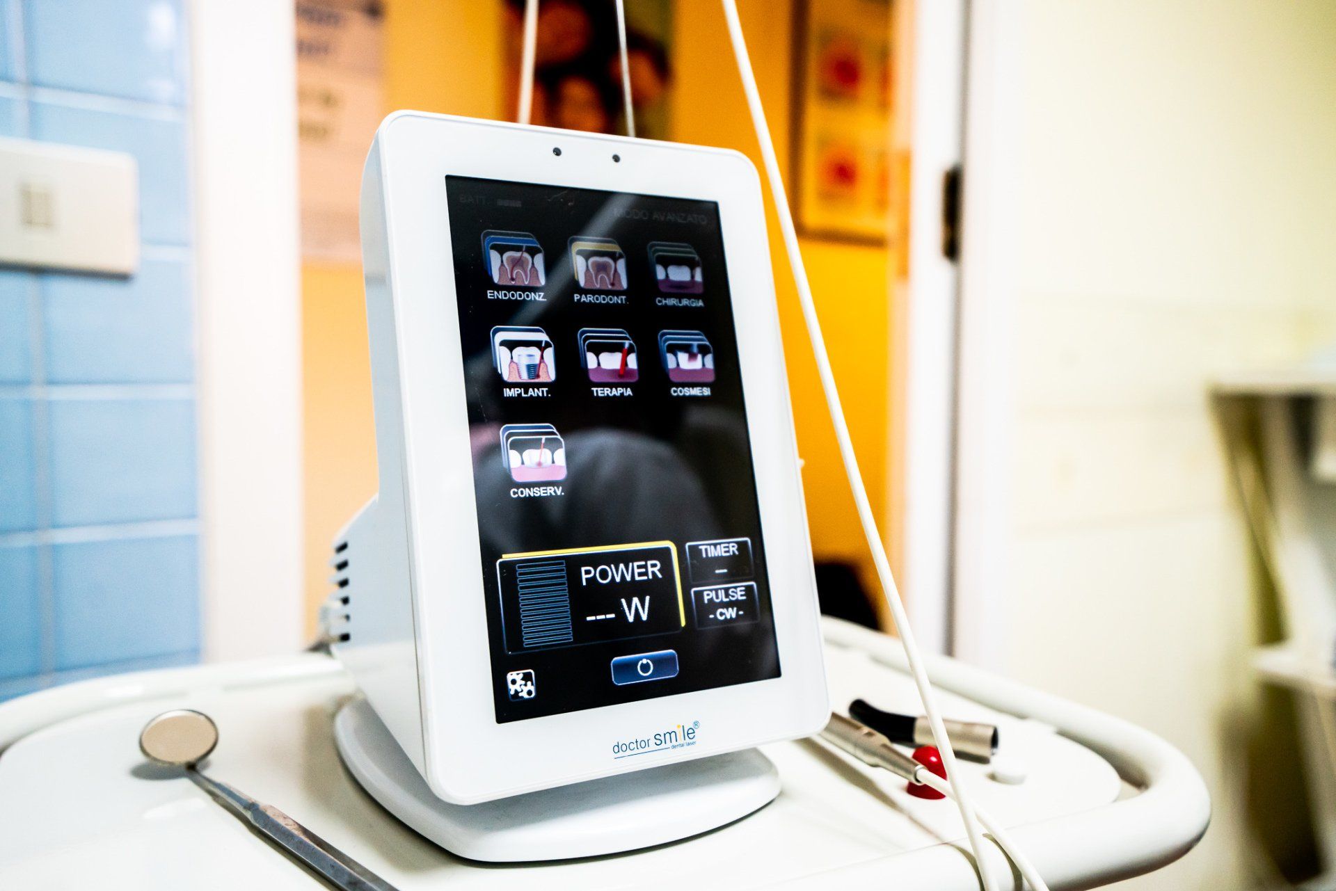 Il laser è uno strumento molto utile nella cura delle gengive: infatti grazie al suo effetto antinfiammatorio e soprattutto battericida permette di ottenere la disinfezione delle tasche gengivali e il controllo della malattia parodontale.